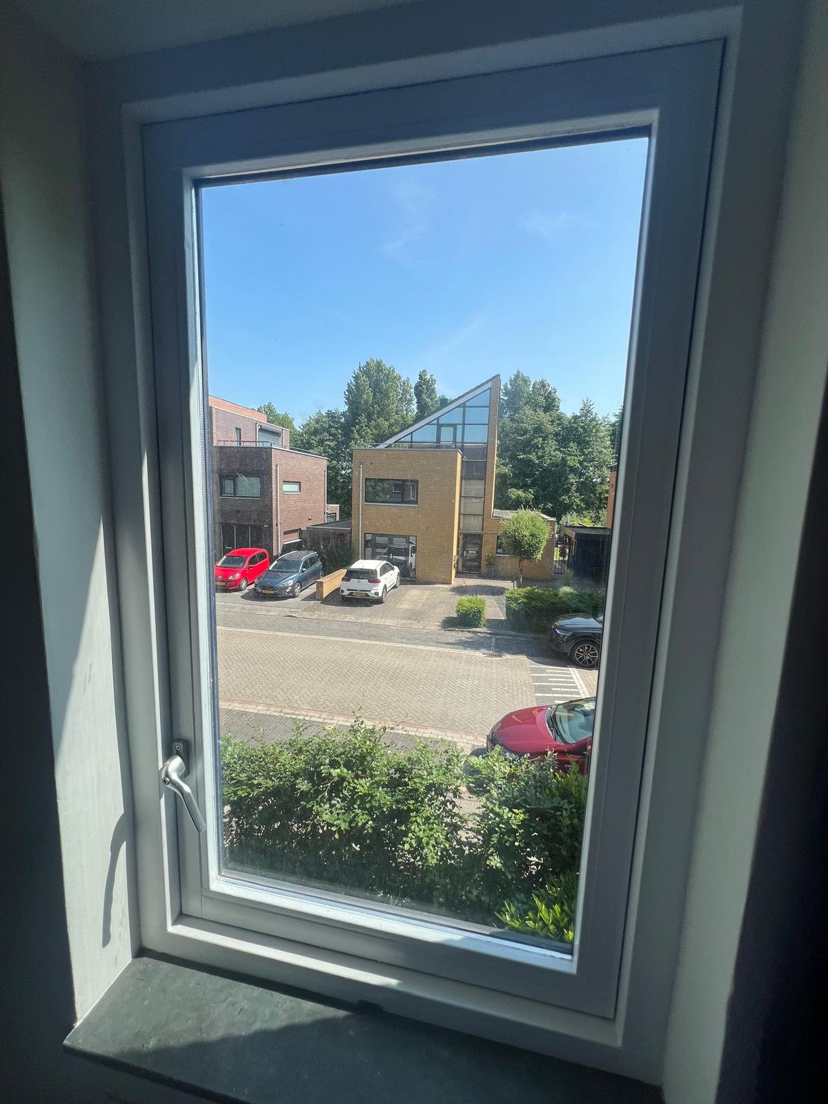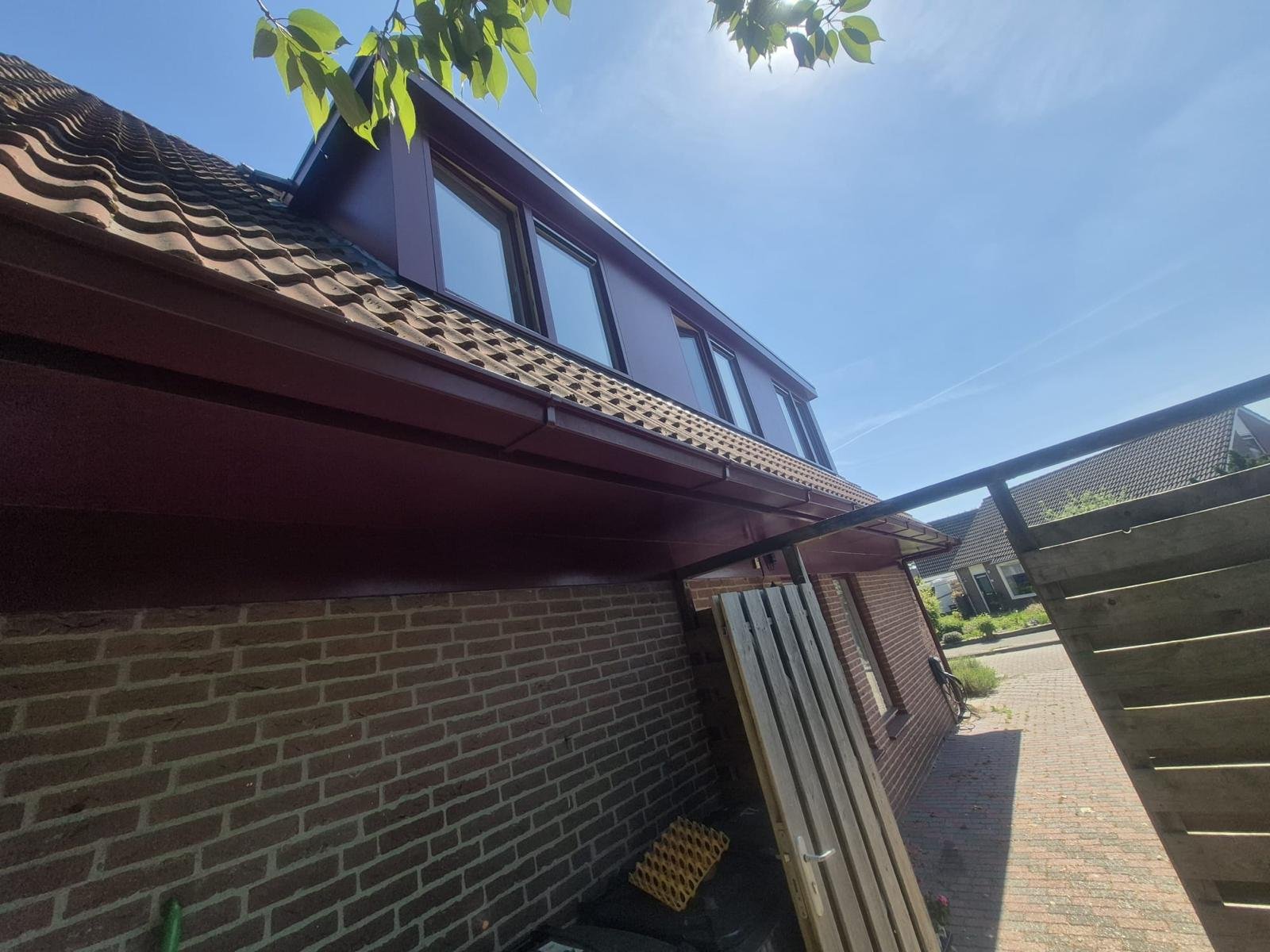 in Leiden is het buitenschilderwerk van een woning grondig en netjes uitgevoerd. De dakkapel, houten kozijnen, gevelplaten én de dakgoot zijn zorgvuldig geschuurd en opnieuw in de verf gezet. Dit heeft de woning weer een frisse, verzorgde uitstraling gegeven.