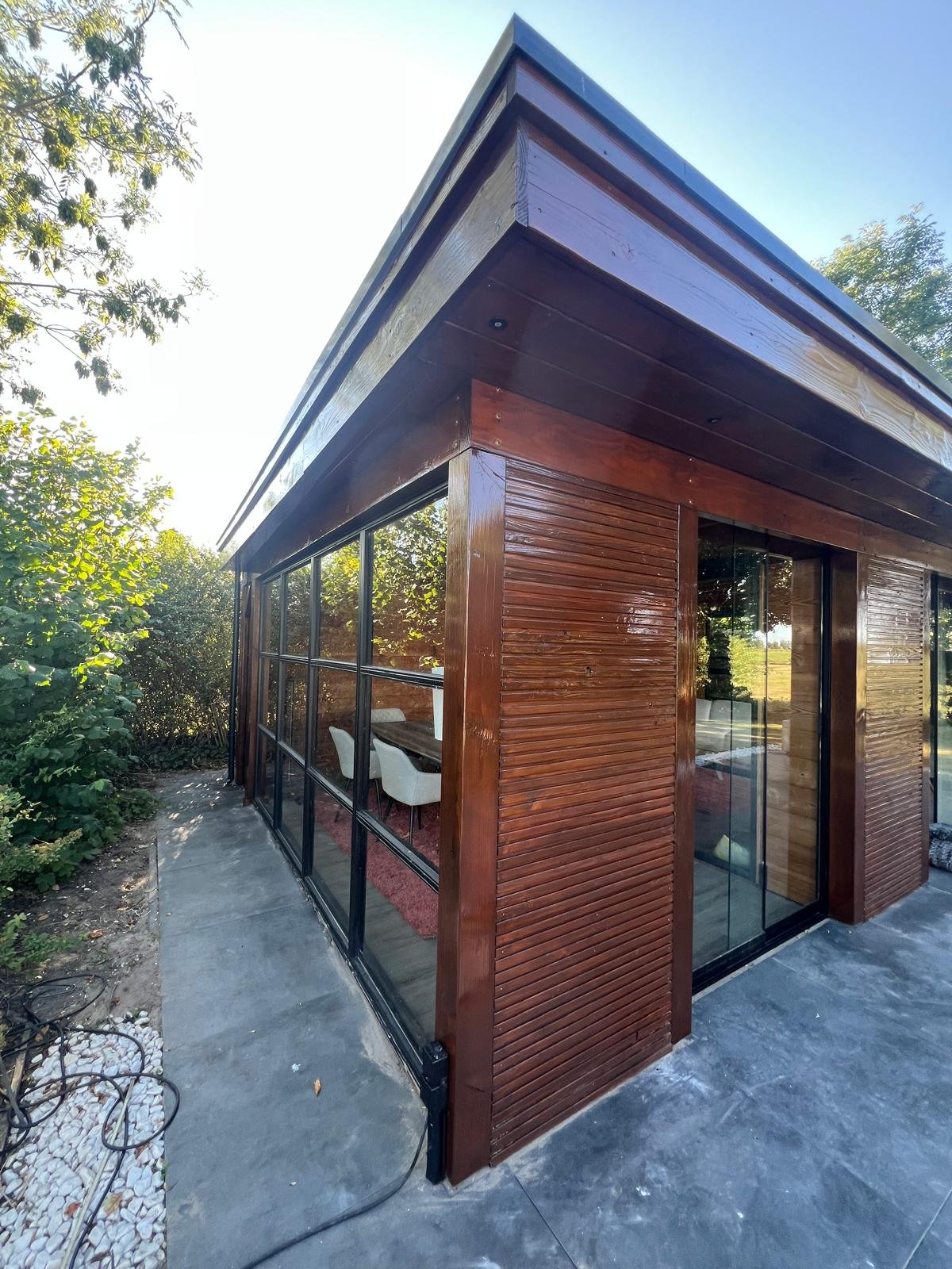 In Hazerswoude-Dorp hebben we twee veranda’s aan de buitenkant grondig schoongemaakt en opnieuw geschilderd. De gevelbekleding en dakgoten van de veranda’s zijn strak afgewerkt met een mooie hoogglans bruine kleur. Dit geeft de veranda’s een frisse en verzorgde uitstraling.