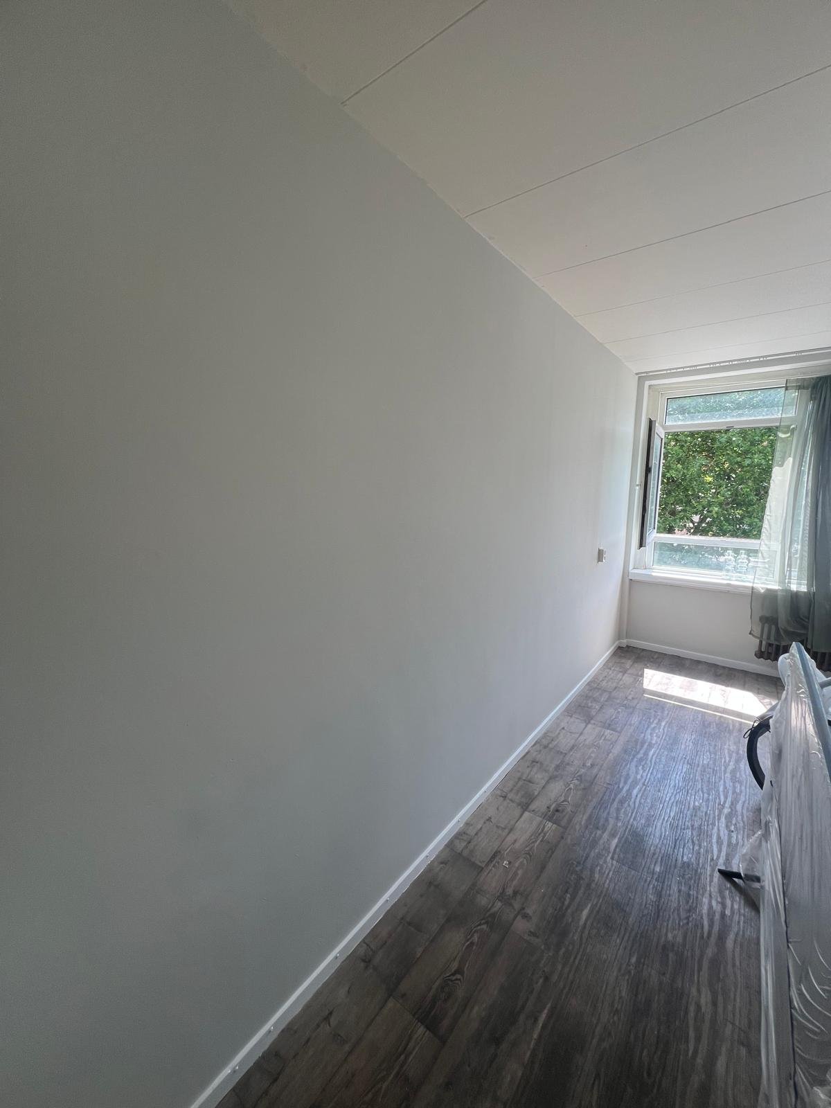 Voor een woning in Den Haag hebben we het complete binnenwerk aangepakt. De wanden en plafonds zijn opnieuw geschilderd in een lichte, frisse tint, waardoor de ruimtes optisch ruimer en lichter ogen. Ook de plinten en binnendeuren zijn netjes afgewerkt met een duurzame, watergedragen verf.
