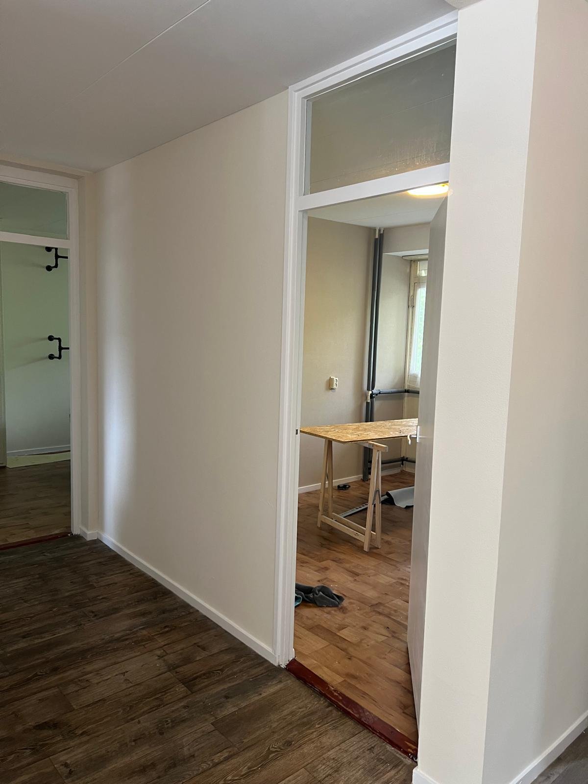In Delfgauw hebben we binnen een woning de kozijnen en deuren opnieuw behandeld met watergedragen verf. Dit zorgt voor een strak en duurzaam resultaat dat het interieur een frisse uitstraling geeft. Ook zijn de muren opnieuw in een lichte kleur geschilderd, wat bijdraagt aan een sfeervolle en verzorgde ruimte.